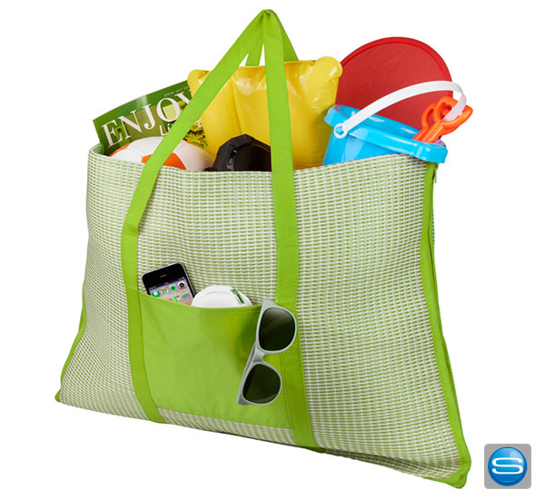 2 in1 Strandmatte als Tasche zum zusammenfalten mit Logo