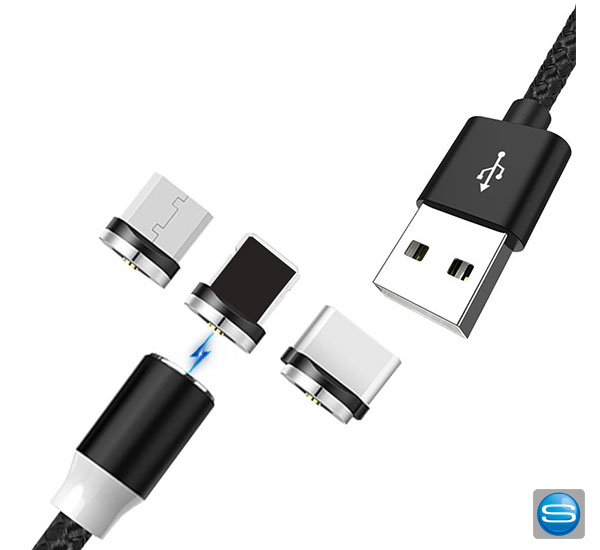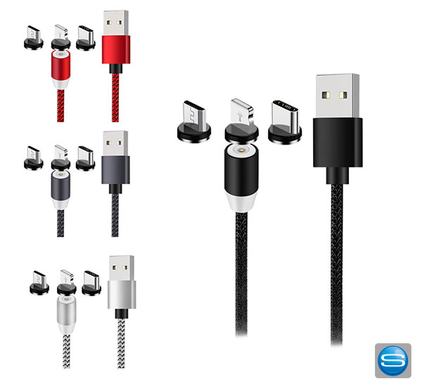 3in1 Ladekabel mit wechselbaren magnetischen Anschlüssen als Give Away mit Logo gravieren