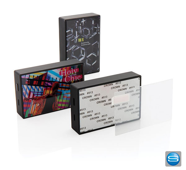 | Werbeanbringung: | Mit 4-c Digitaldruck auf Vorderseite des Lautsprechers; Druckfläche: ca. 87 x 57 mm |
