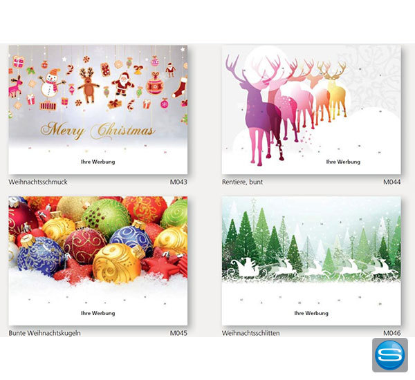 | Anmerkungen: | Bitte bechten Sie, dass es in der Vorweihnachtszeit zu Lieferengpässen kommen kann! Preisbeispiel für 1fbg. Logoeindruck zzgl. Drucknebenkosten |