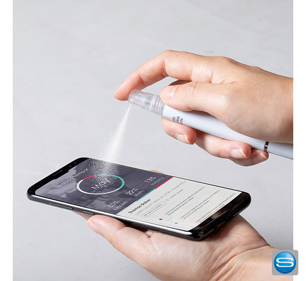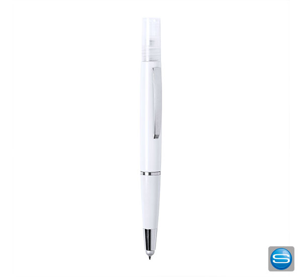 Antibakterieller Werbekugelschreiber mit Platz für Reinigungsspray in Kappe
