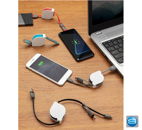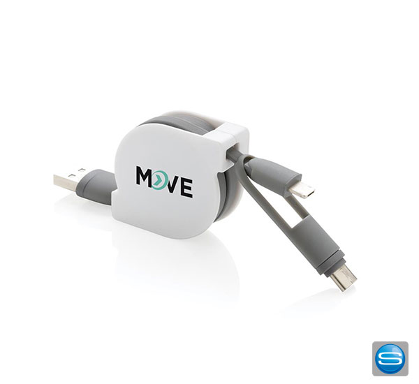 Ausziehbares 3in1 Kabel als Werbeartikel mit Logo bedrucken