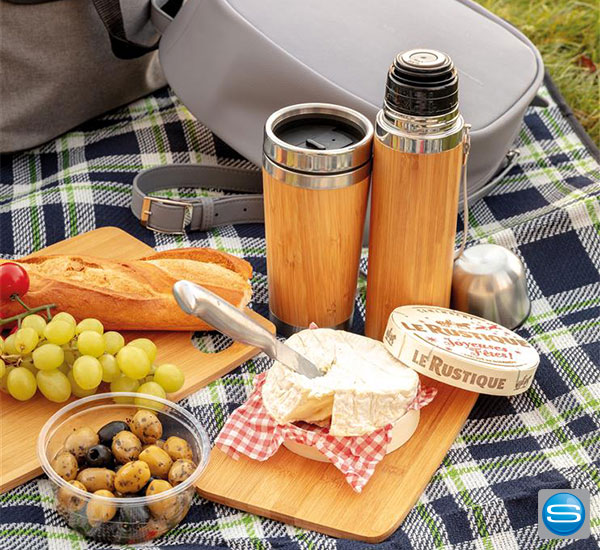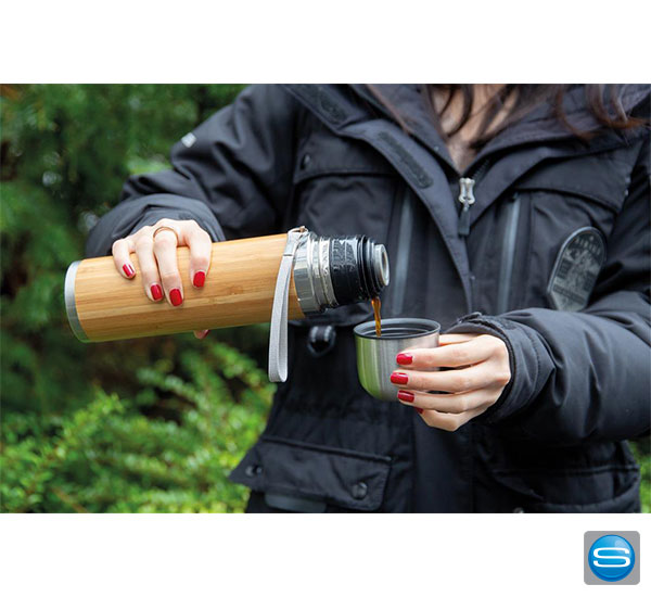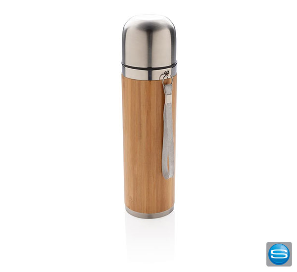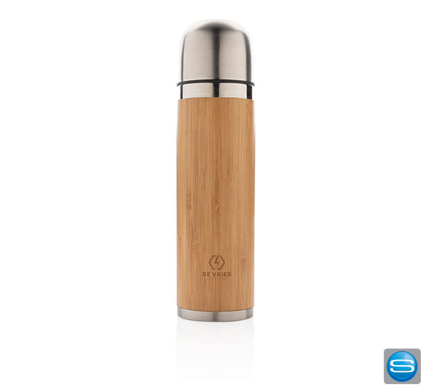 Bambus Vakuumflasche mit Auslaufschutz als Werbegeschenk