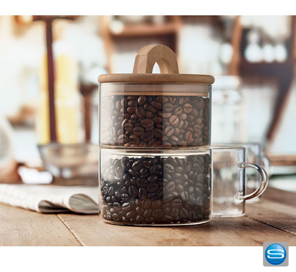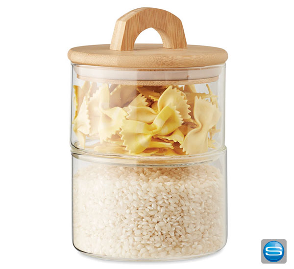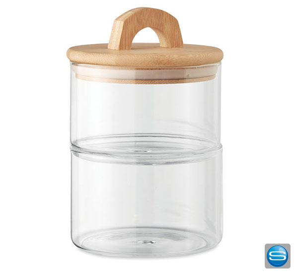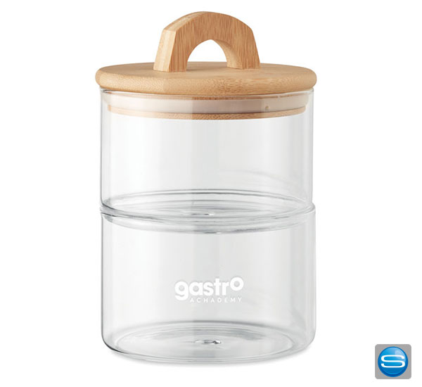 Bedruckbare doppelstöckiges Aufbewahrungsglas mit Verschluss aus Bambus