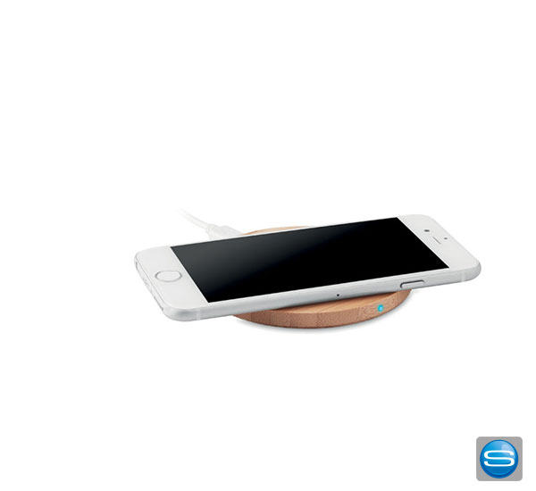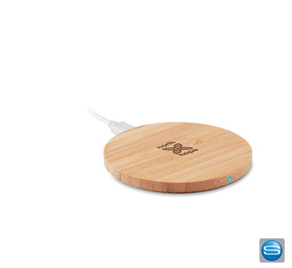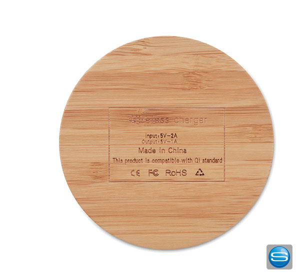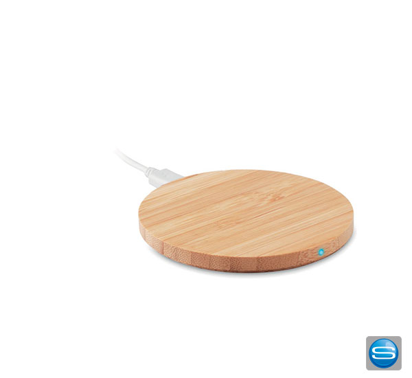 Bedruckbare Ladestation aus Bambus als Werbeartikel