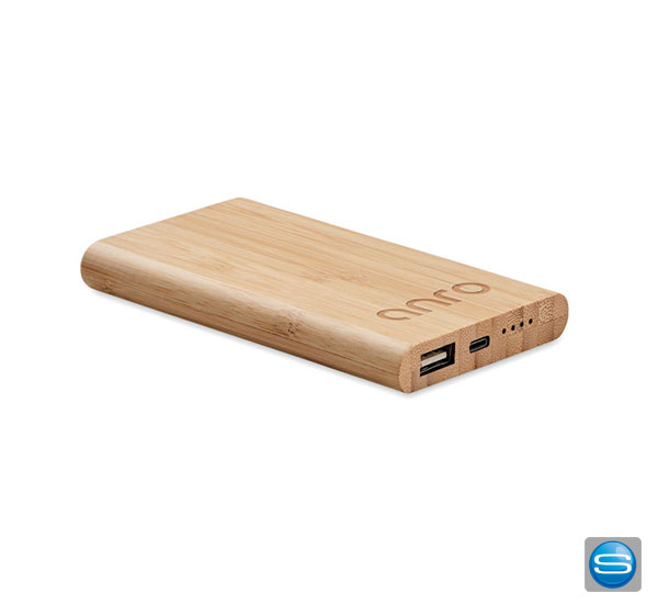 Bedruckbare Powerbank im Gehäuse aus Bambus
