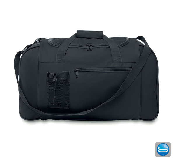 Bedruckbare Sport- Reisetasche aus 600D Polyester mit Reißverschlussfronttasche, kleines Netzfach und verstellbarer und abnehmbarer Schultergurt. Gerne bedrucken wir Ihnen diese Umhängetasche mit Ihrem Logo oder einem Motiv Ihrer Wahl.