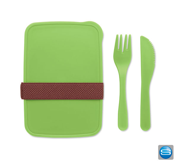Bedruckbare Sandwichbox mit Besteck aus PP als Werbemittel