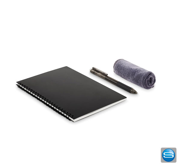Bedruckbares Notizbuch mit wasserlöslichem Stift und Reinigungstuch