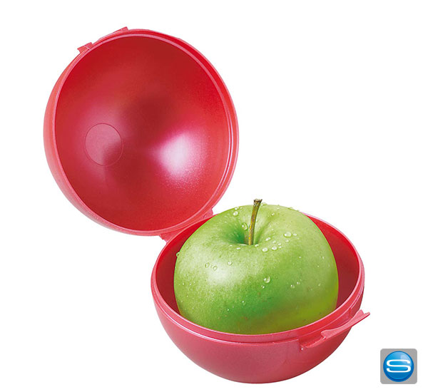 Bedruckte Vorratsdose für Äpfel und Orangen als Werbegeschenk