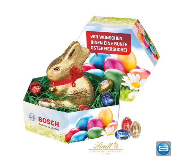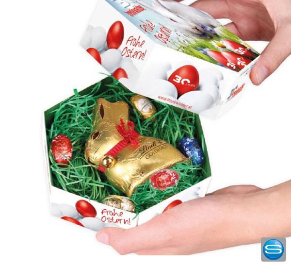 Bedrucktes Osternest von Lindt als Werbepräsent zu Ostern