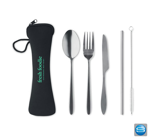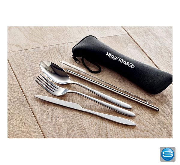 Besteckset aus Edelstahl im Set in bedruckbarer Aufbewahrungstasche