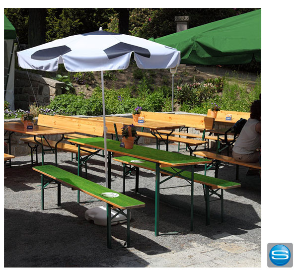 | Maße: | Biertisch: 220 x 50 x 73 cm, Bänke: 220 x 25 x 48 cm |