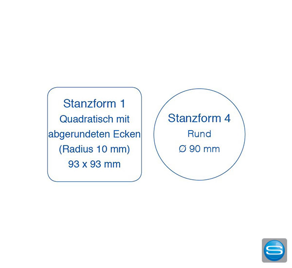 | Maße: | 1,4mm dick; rund=Ø 107 mm; quadratisch=93x93mm |