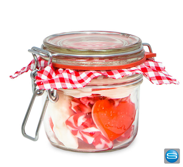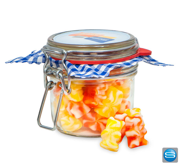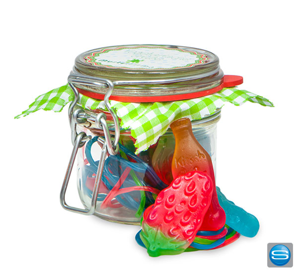 Bonbonglas mit Bügelverschluss und individuellem Etikett