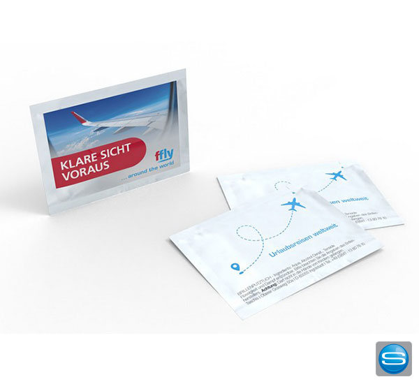 | Material: | Feuchttuch aus Nasskrepp, Inhaltsstoffe Isopropanol, Aqua demin., erste Qualität, hautfreundlich, Schnellentfaltung, Reisslasche mit Kerbe |