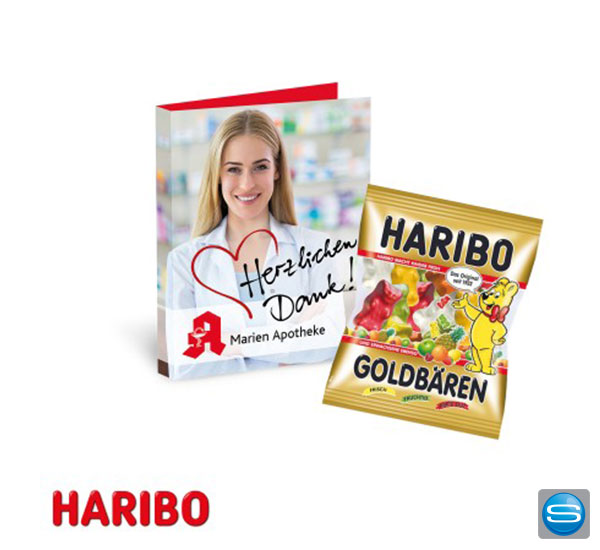 Doppelkarte mit Haribo Gummibären als Werbemittel bedruckt
