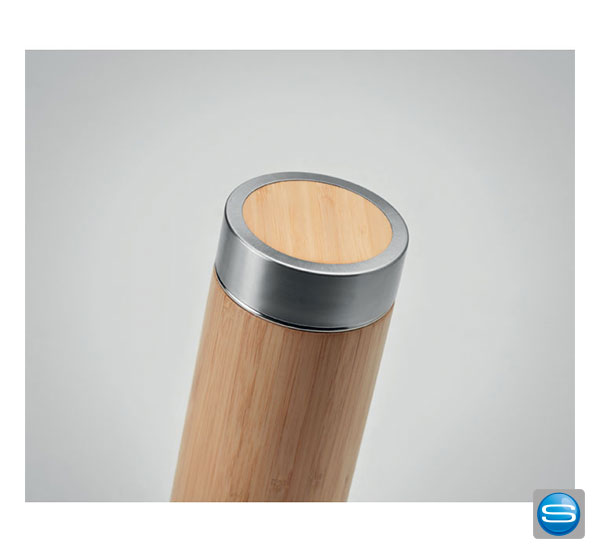 Doppelwandige Isolierflasche mit Tee-Sieb als Werbemittel mit Logo veredeln