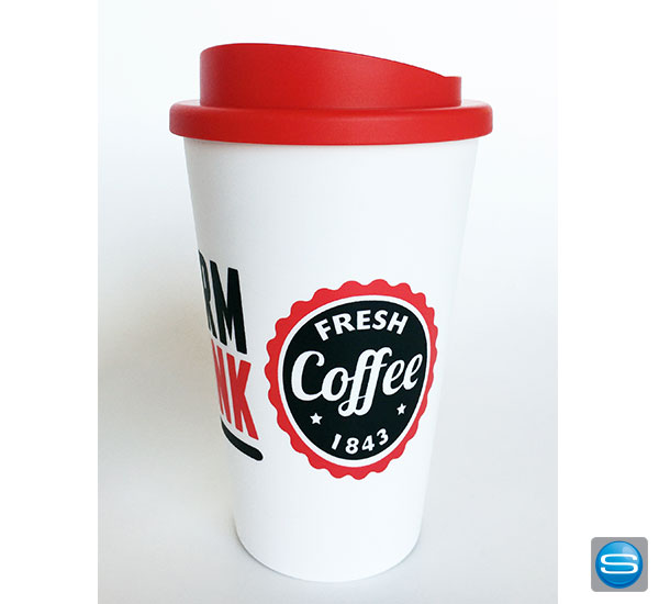 Doppelwandiger Coffee 2 Go Becher aus Kunststoff in vielen verschiedenen Farben