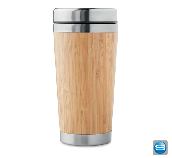 Doppelwandiger Trinkbecher aus Edelstahl mit Bambus-Finish als Wergeschenk