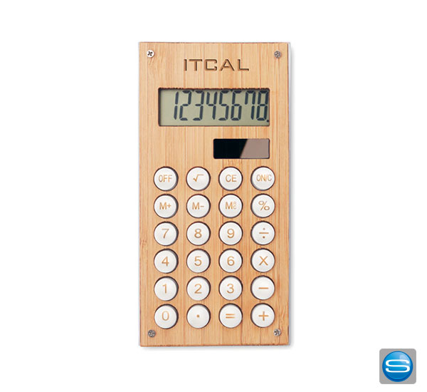 Dual Taschenrechner aus Bambus mit Ihrem Firmenlogo