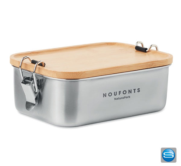 Edelstahl Lunchbox mit Bambusdeckel als Werbegeschenk individuell bedrucken