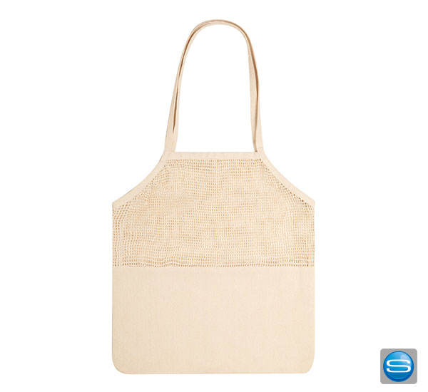 Einkaufstasche aus Baumwolle mit Netzteil als Werbeartikel mit Logo bedrucken