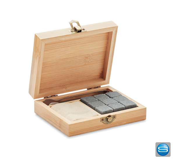 Eiswürfel in Bambusbox als Werbemittel mit eigenem Logo