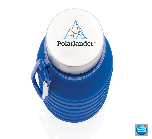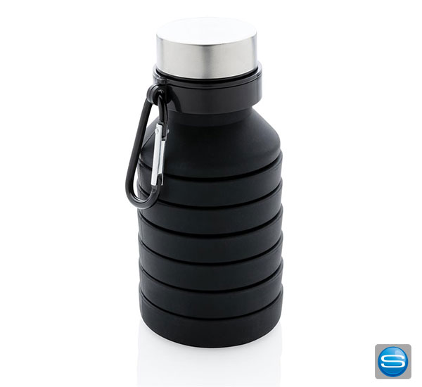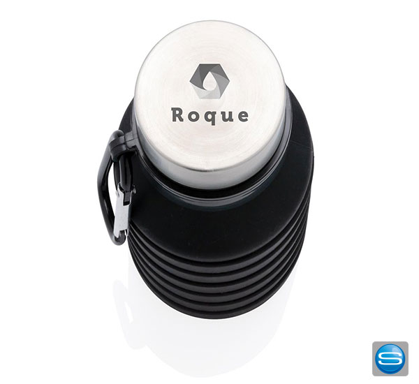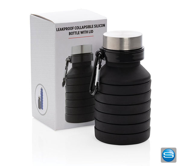 Faltbare auslaufsichere Silikontrinkflasche als Werbegeschenk mit Logodruck