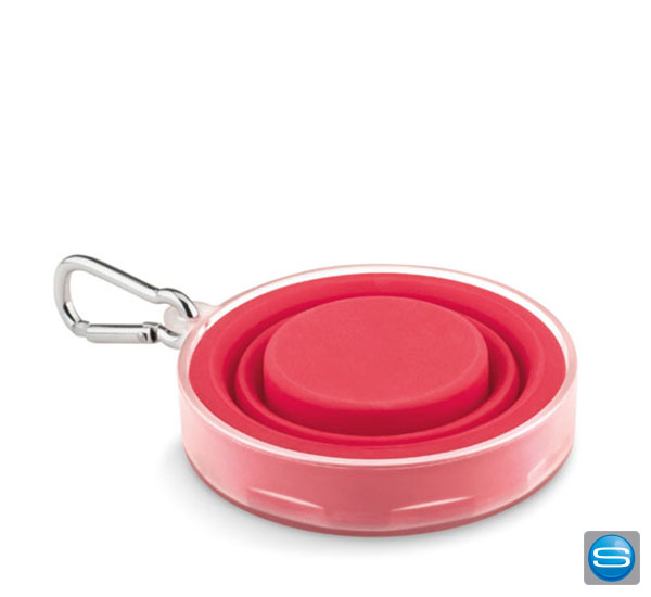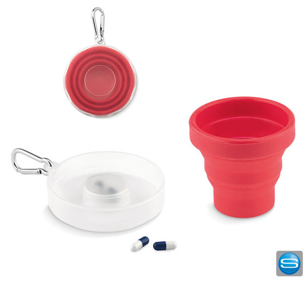 Faltbarer Becher mit Pillendose als Werbegeschenk
