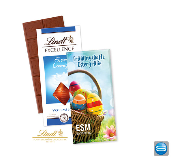 Flache Schokotafel von Lindt mit Werbedruck