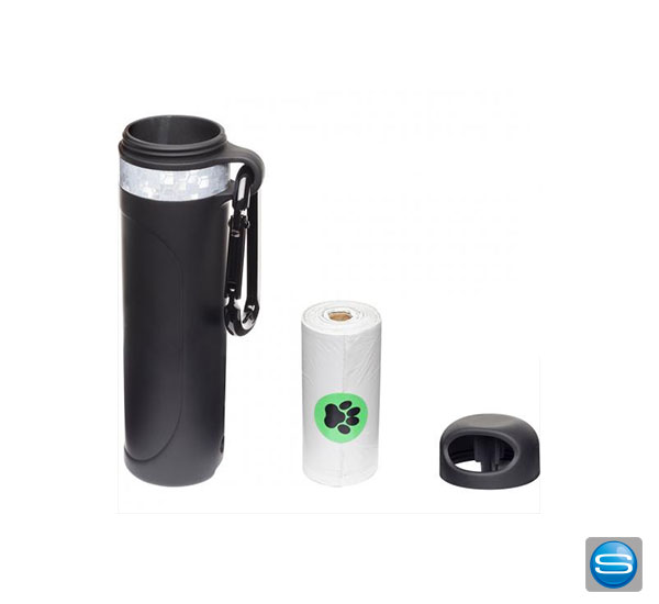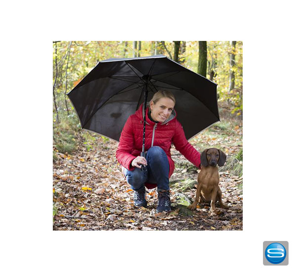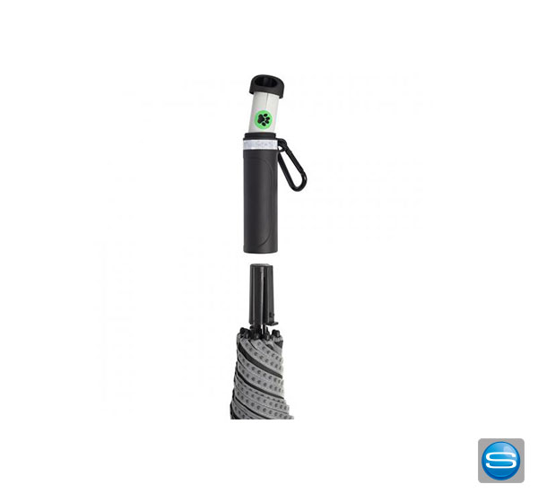 Gästeschirm DoggyBrella mit Hundekotbeutel im Griff
