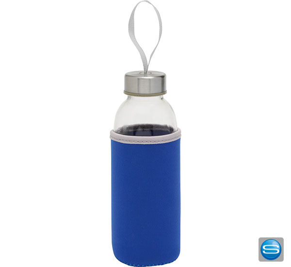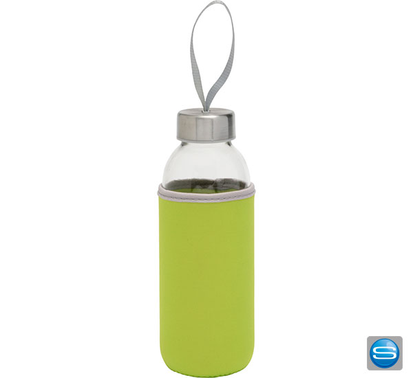 Glasflasche mit farbiger Schutzhülle mit Logodruck