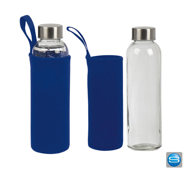Glastrinkflasche mit Transporthülle als Werbemittel