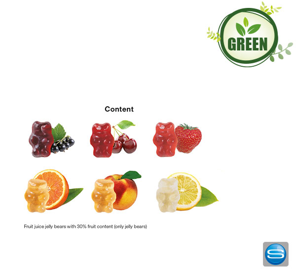 Gummibärchen mit 30 % Fruchtsaftanteil verpackt in klimaneutralem Tetraeder mit Logo bedrucken