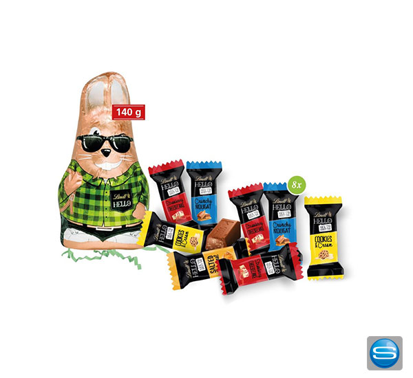 | Material: | Schokoladenmischung ca. 220 g, bestehend aus 8 Stück Lindt HELLO Mini Stick Mix |