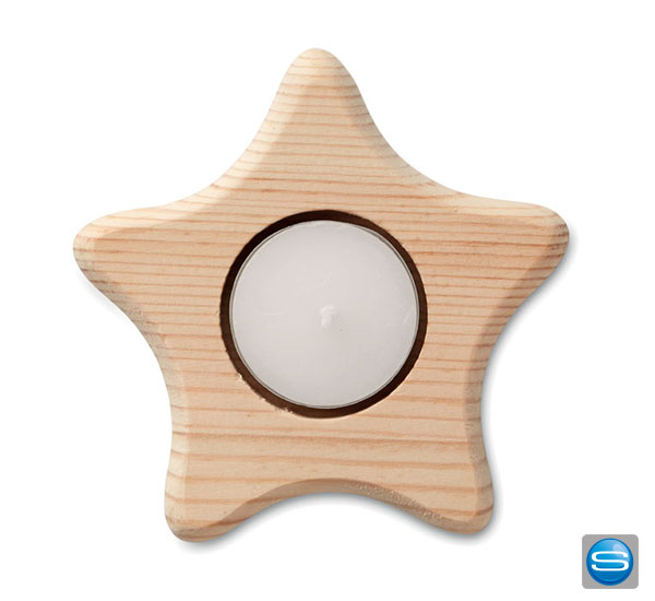 Holzteelichthalter in Form eines Sterns als Give Away mit Logogravur