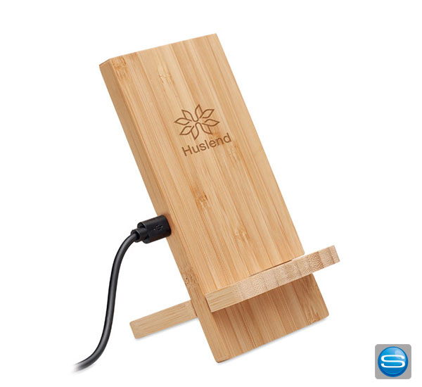 Induktive Ladestation aus Bambus mit Ihrem Logo