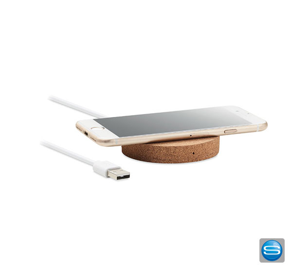 Induktive Ladestation aus Kork mit Ihrer Werbung