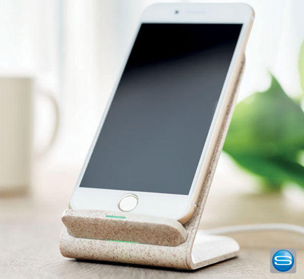 Induktive Ladestation inklusive Halterung aus Weizenstroh individuell bedruckbar