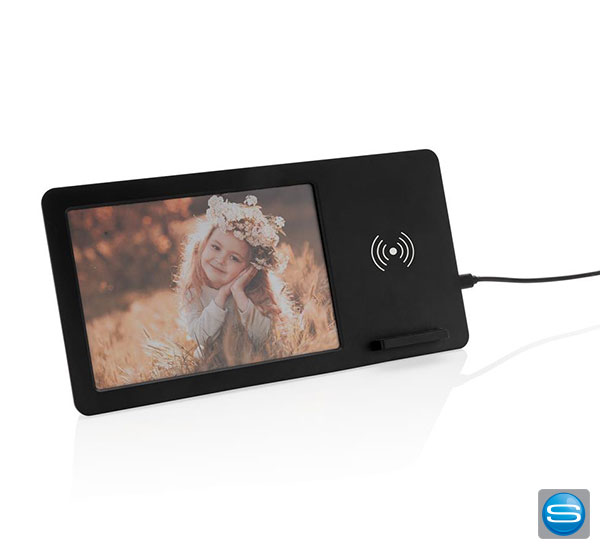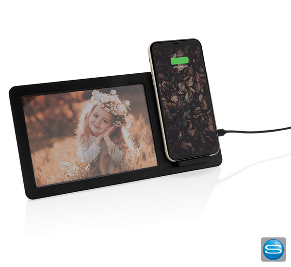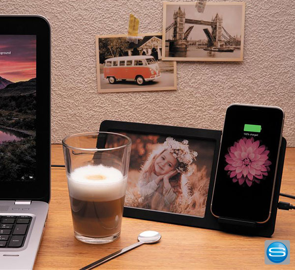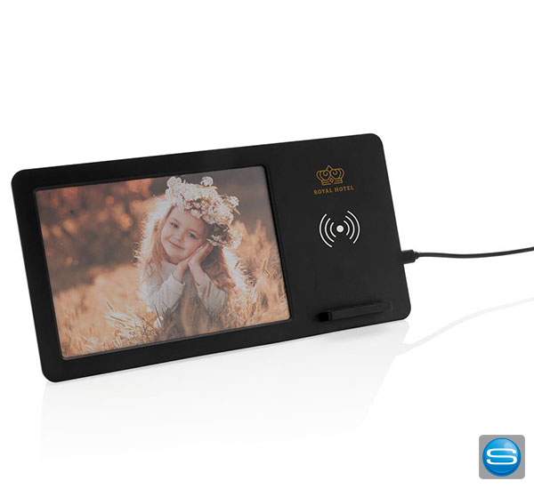 Induktive Ladestation mit Bilderrahmen als Werbemittel