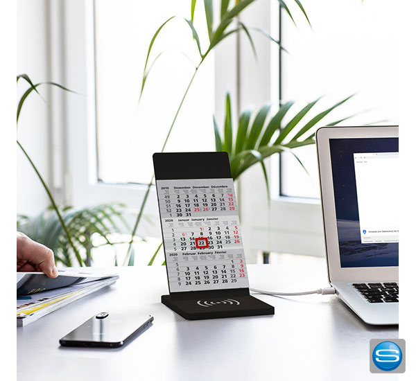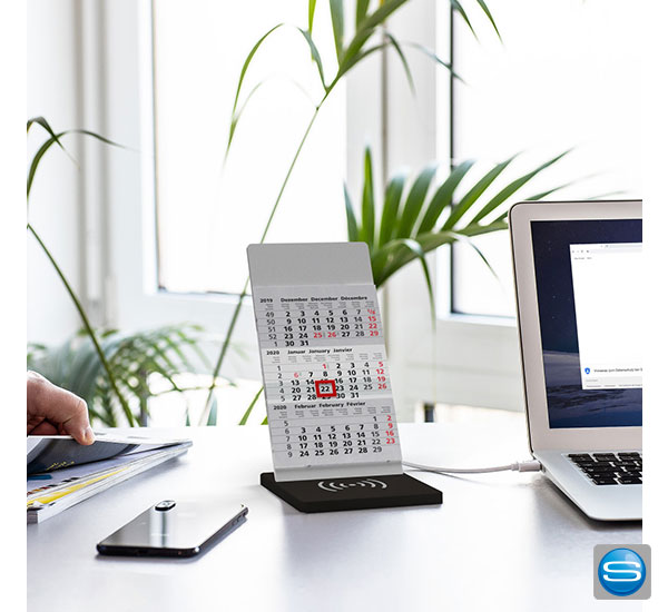 Kalender mit Wireless Charger als Give Away mit Logo bedrucken