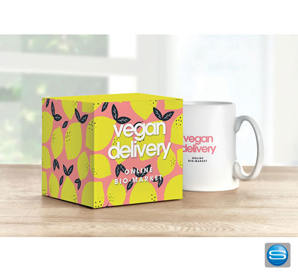 Keramik Tasse mit Geschenverpackung als Werbeartikel