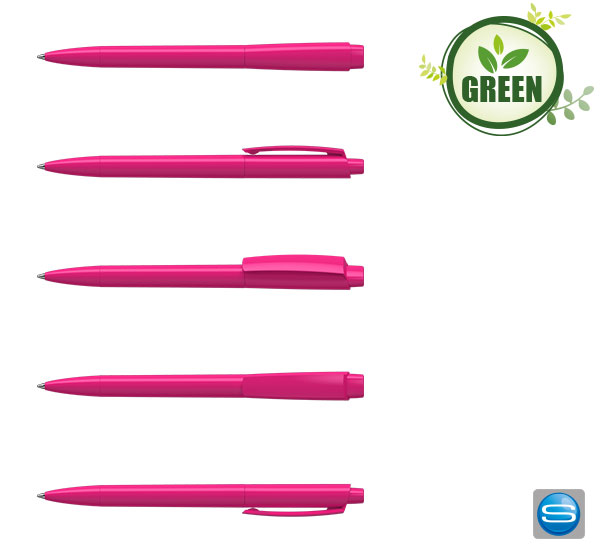 Der Kugelschreiber Zeno der Marke Klio-Eterna ist ein nachhaltiger Markenwerbekugelschreiber, dessen Gehäuse sowie auch die Mechanik zu 100% aus recyceltem Material hergestellt wird. Das Material wird zum Beispiel aus ausrangierten Kühlergrills der Autoindustrie gewonnen und zu Granulat umgearbeitet. Kombinieren Sie die 16 verschiedenen Farbmöglichkeiten und erhalten Sie Ihren Lieblings Kugelschreiber mit eigenem Logo. Die Herstellung der Stifte erfolgt in Deutschland im seit 1900 bestehenden Traditionsbetrieb Klio. Aufgrund der verwendeten Rrecycelten Rohstoffe kann es zu leichten Farbabweichungen innerhalb einer Auflage kommen - dies macht jedoch gerade den Charme dieses nachhaltigen Werbestifts aus! Ab einer Stückzahl von 5.000 Stück können die Kulis auch in Ihrer Wunschpantonefarbe eingefäbrt werden. Erhältlich mit blau- oder schwarz-schreibender Mine. Der Recycling Kugelschreiber kann an vielen Positionen individuell bedruckt werden, zum Beispiel mit einem vollfarbigem Digitaldruck auf dem Clip oder rund um den Schaft. Oder auch ganz klassisch mit einem 1-farbigen Logo. Auf der Unterseite des Schafts ist standardmäßig "recyclingpen" mit aufgedruckt.