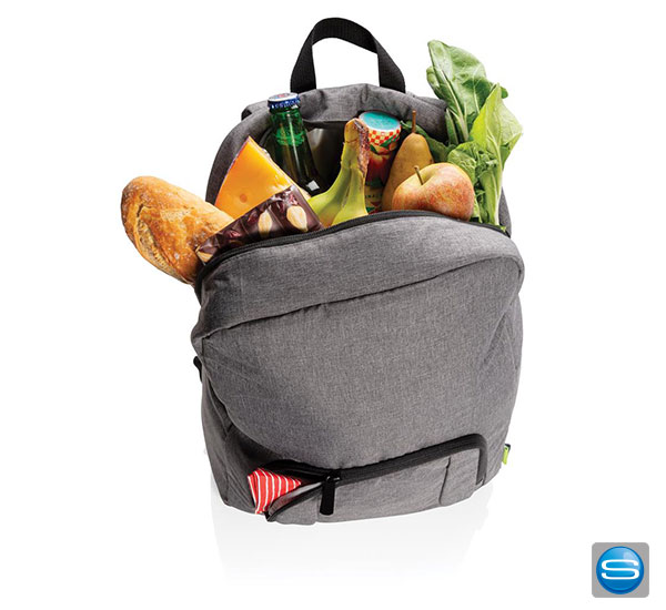 Kühlrucksack aus rPET als Werbegeschenk mit Logo bedruckt