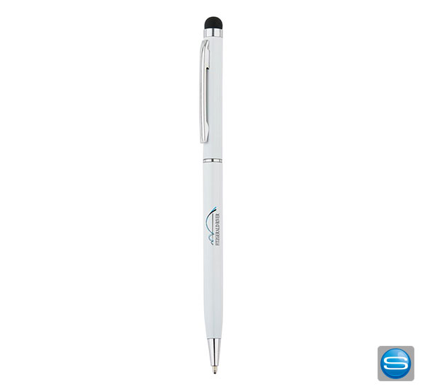 Kulgelschreiber aus Aluminium mit Stylus und Touchfunktion als Give Away mit Logo bedruckt