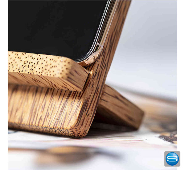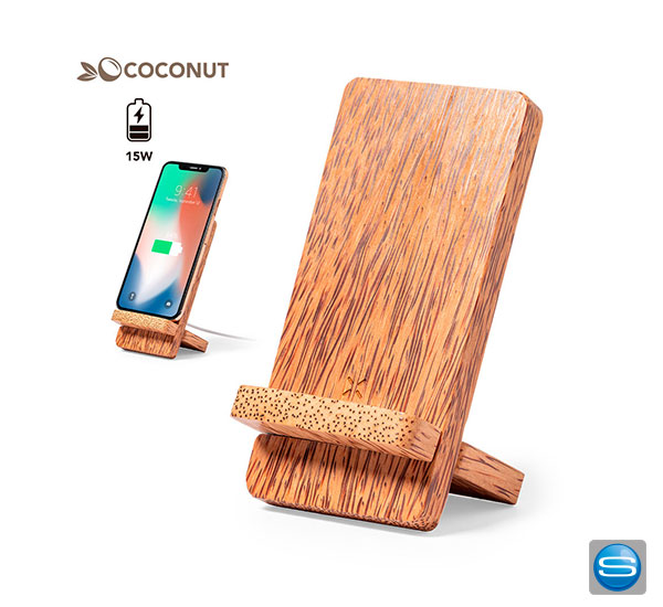 Ladegerät aus Kokosnuss mit Ihrer Werbung gravierbar