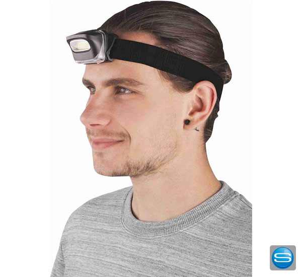 LED-Kopflampe mit Logoaufdruck