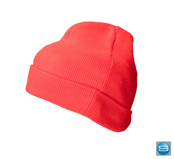 Leichte Strickmütze mit Umschlag mit Stick als Werbeartikel veredelbar