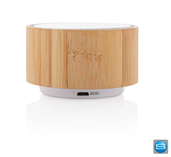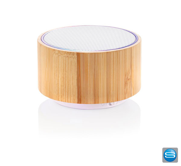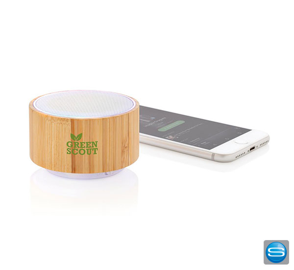 Leuchtender Bambus Lautsprecher als Werbeartikel bedrucken